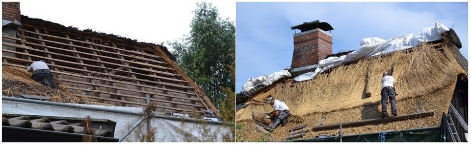 Weitere fast 20 Jahre später - im Spätsommer des Jahres 2011 - wechselt der Eigentümer von „Uns Hus“ ein weiteres Mal. Nach ein paar Umbauarbeiten ziehen wir in das Haus am Steinkamp ein. Im Laufe der nächsten Jahre entwickelt sich die Idee das Haus wieder komplett unter ein Reetdach zu bringen. Und im Hochsommer 2014 geht es dann los…