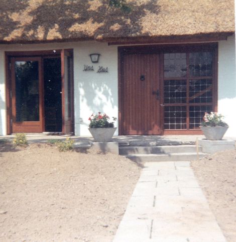 Im Jahre 1968, der Zimmermann und seine Frau waren inzwischen leider verstorben, fasste der Sohn Alfred - ebenfalls Zimmermann - den Entschluss, mit Hilfe seiner inzwischen zur Schule gehenden Söhne Peter und Jochen das Haus für die Familie als Wochenendhaus umzubauen. Unter Mitwirkung eines Architekten wurden Wohn- und Schlafräume, Küche und Speisekammer sowie Ölheizung und ein neuer Brunnen mit elektrischer Pumpe geplant. Auch einen offenen Kamin sollte es im Wohnzimmer geben, was den Bau eines breiten Schornsteins mit zwei Zügen für Heizung und Kamin zur Folge hatte. Die beiden Jungs halfen trotz Schule und Schulaufgaben immer kräftig mit, auch als dann im Frühjahr des Jahres 1969 das alte Reetdach einem neuen weichen musste. Dabei wurde auch vor den Dachbalken nicht Halt gemacht, so dass die gesamte Dachkonstruktion mit allen Sparren und der Außen- und Innenverschalung erneuert wurde. Danach bekam dann das ganze Dach eine 26 cm dicke Reet Schicht. Das Reet kam damals vom Plattensee in Ungarn und lag schon lange im Garten bis das Wetter eine zügige Deckung zuließ. Als dann schließlich immer Sommer 1970 auch die Zimmermannswerkstatt und der Garten Form angenommen hatten wurde hier endlich richtig gewohnt…