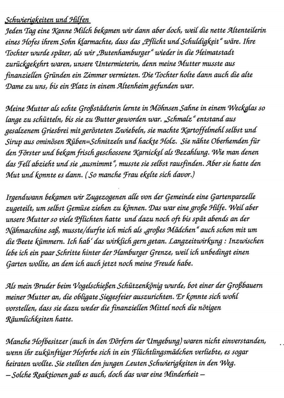 Auf einem Konzert auf Gut Basthorst überreichte sie mir ihre Erinnerungen an diese Zeit.